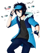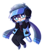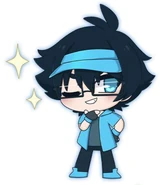 Luni is a Straight Toned Man with a Black Messy Hair and a Light Blue Hat, Glasses and Eyes. He wears a Light Blue Jacket, Belt and Shoes with Black T Shirt and Pants. Although He wears a Varies Costumes since the Gacha Resorts where this is His Gacha-Canon Debut.